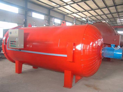 電加熱硫化罐通過活動(dòng)接軌和接引小車將所需進(jìn)行加工的產(chǎn)品裝入硫化小車通過軌道和接引小車進(jìn)入硫化罐內(nèi),待其結(jié)束工作,再通過硫化小車把硫化產(chǎn)品運(yùn)輸出來。